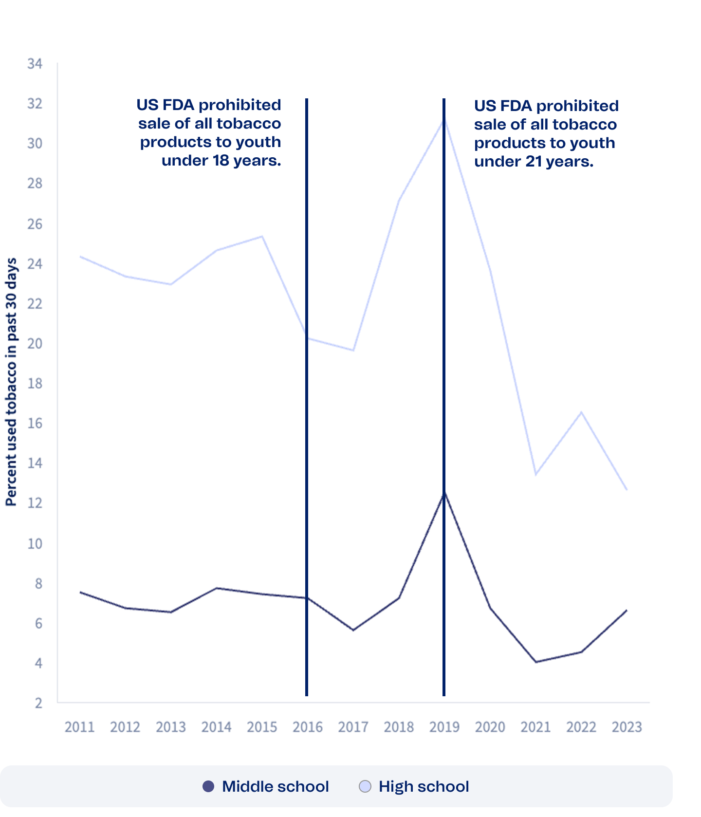 Youth tobacco use increased rapidly in 2018 and 2019 and plummeted immediately after the US Food and Drug Administration adopted the minimum age law of 21 (T21 Law).